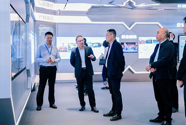 拜访领导第一时间参观了公司展厅,对讯方技术的开展历程、业务模块、经营理念、合作成果等内容进行深入分析,对讯方技术构建人才培养“三循环”生态模式、深度参与高校课程改革、引入职业认证等举措表示赞同。